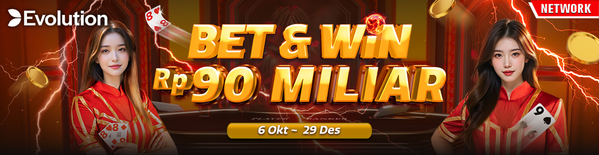 Bet & Win Cash Drop oleh Evolution akan berlangsung mulai 06 Oktober 07:00 WIB hingga 29 Desember 06.59 WIB. Total 12 periode dengan total jumlah hadiah RP 22,500,000,000 yang akan dibagikan kepada 70,344 pemain yang memasang taruhan di meja Evolution Baccarat selama periode promosi. Total hadiah untuk rangkaian promosi Network Evolution Bet & Win senilai Rp.90,000,000,000.